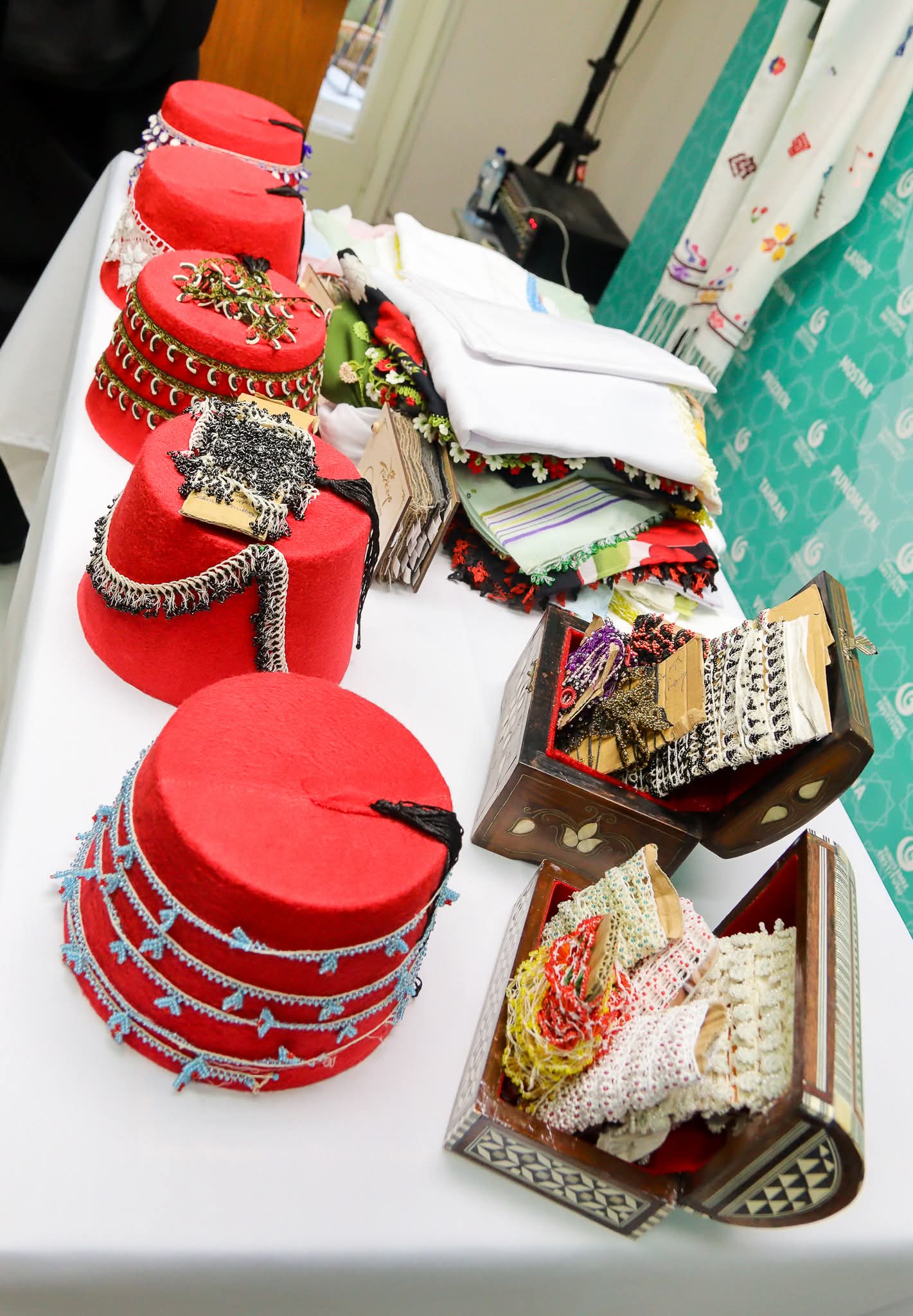 من جانبها، سلّطت فنانة التصوير الفوتوغرافي، كبرا تشتين، الضوء على مظاهر استخدامات الأويا في الحياة اليومية من خلال البورتريهات المصورة التي قامت بالتقاطها للمعرض؛ بينما نقلت باحثة الفولكلور التركي، توركان أورال، للحضور، الخلفية الثقافية والدلالات الاجتماعية للمشغولات التي يُستخدم فيها الأويا.