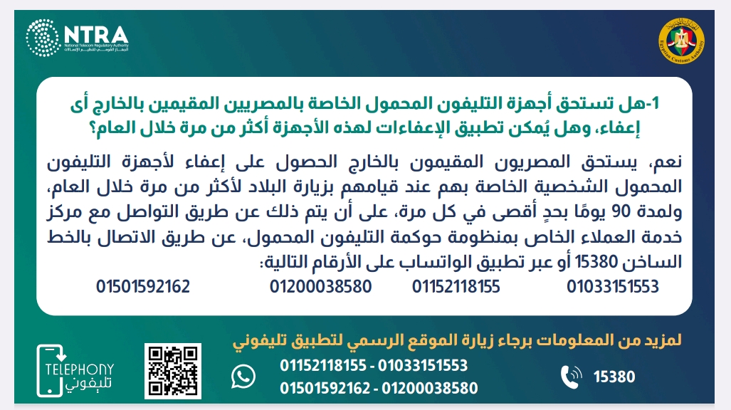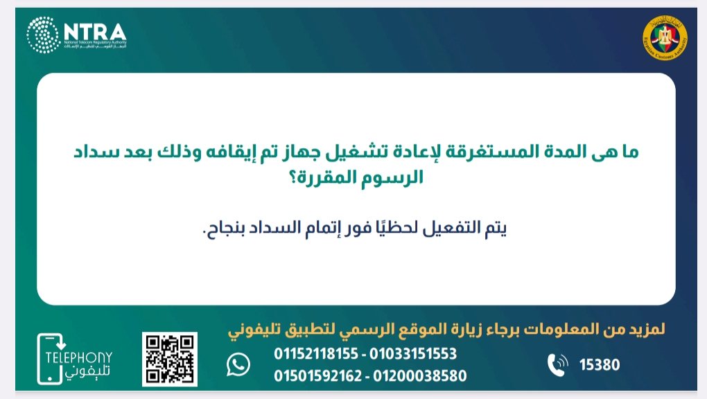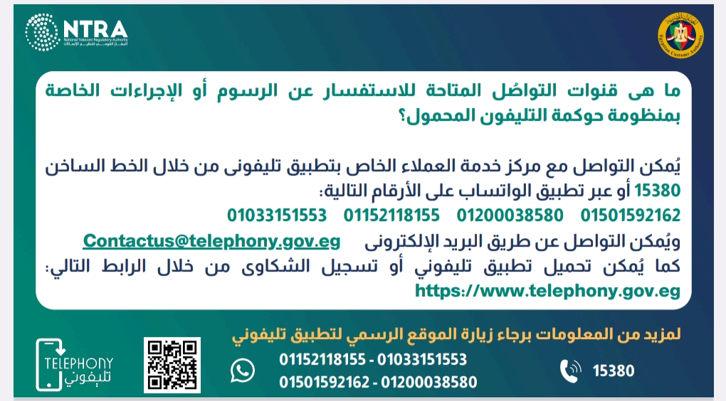 ولمزيد من المعلومات يمكن التواصل مع الخط الساخن لتطبيق تليفوني على رقم ١٥٣٨٠