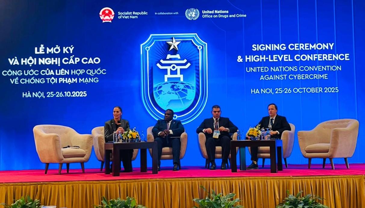 وشارك وزير الاتصالات على رأس وفد مصرى رفيع المستوى في مراسم توقيع اتفاقية الأمم المتحدة لمكافحة الجريمة السيبرانية الذى استضافته فيتنام حيث وقع ممثلا عن مصر على الاتفاقية، كما نظمت مصر جلسة حوارية رفيعة المستوى حول النهج الشامل للدولة فى تحقيق العدالة السيبرانية الدولية وبناء القدرات الإقليمية فى مجالات الأدلة الرقمية والتحقيقات السيبرانية، كذلك شاركت مصر فى المعرض المقام على هامش الفعالية لاستعراض القدرات والإمكانيات الوطنية فى مجال مكافحة الجريمة الإلكترونية.