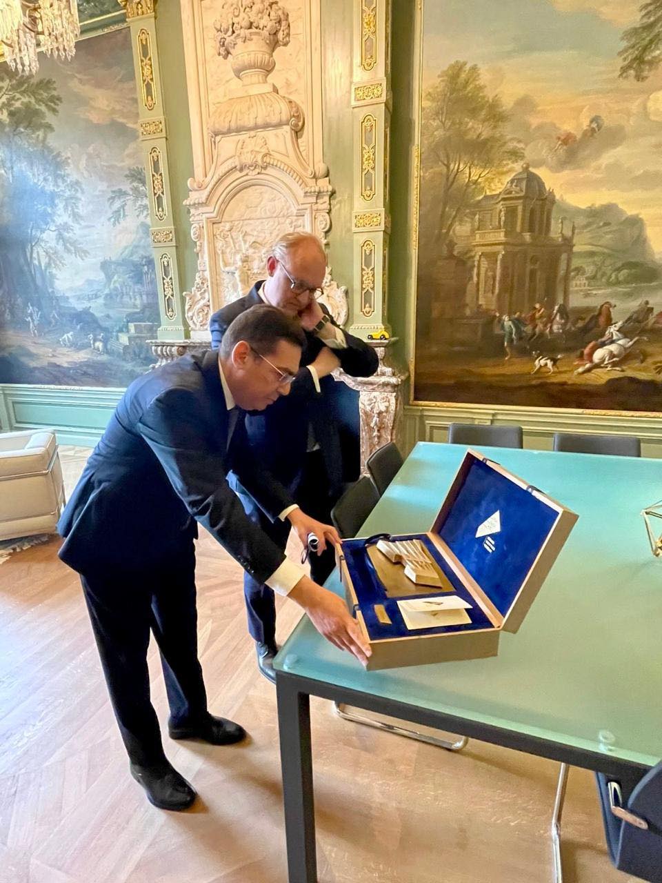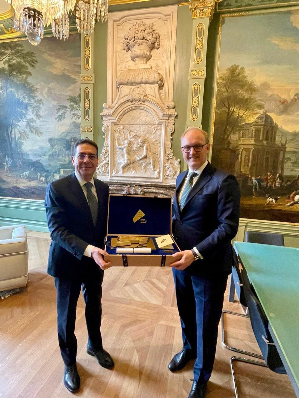 استقبل السفير كريستوفر يونكر، مدير مكتب ملك هولندا، السفير عماد حنا، سفير مصر في لاهاي، الذي قام بتسليم الدعوة الموجهة من الرئيس عبد الفتاح السيسي، رئيس جمهورية مصر العربية، إلى الملك ڤيليم ألكسندر، ملك هولندا، للمشاركة في حفل افتتاح المتحف المصري الكبير، وكذا الهدية التذكارية المقدمة لملك هولندا والمتمثلة في مُجسم مُصغر للمتحف المصري الكبير.