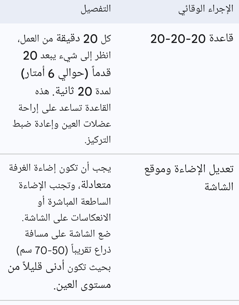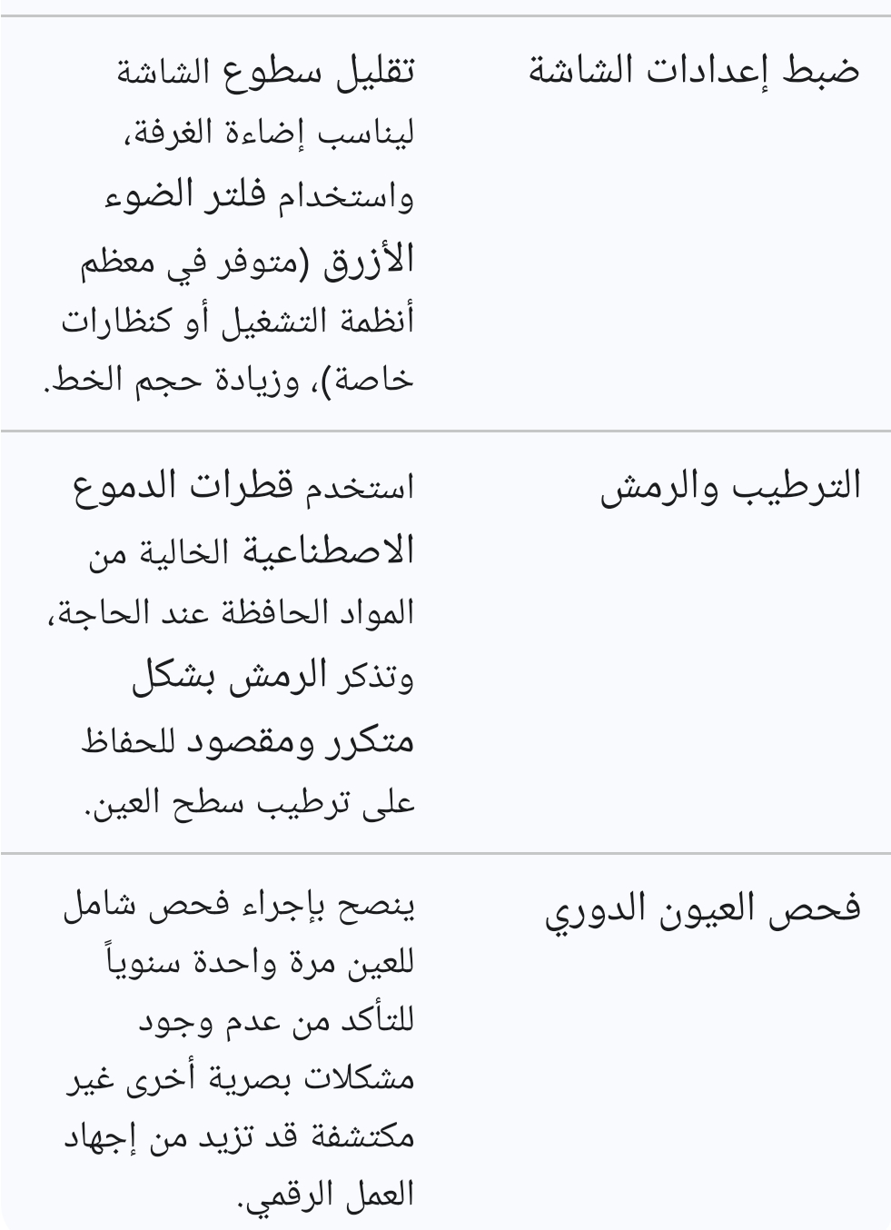 إجراءات وقائية: حلول لتخفيف الضغط البصري
