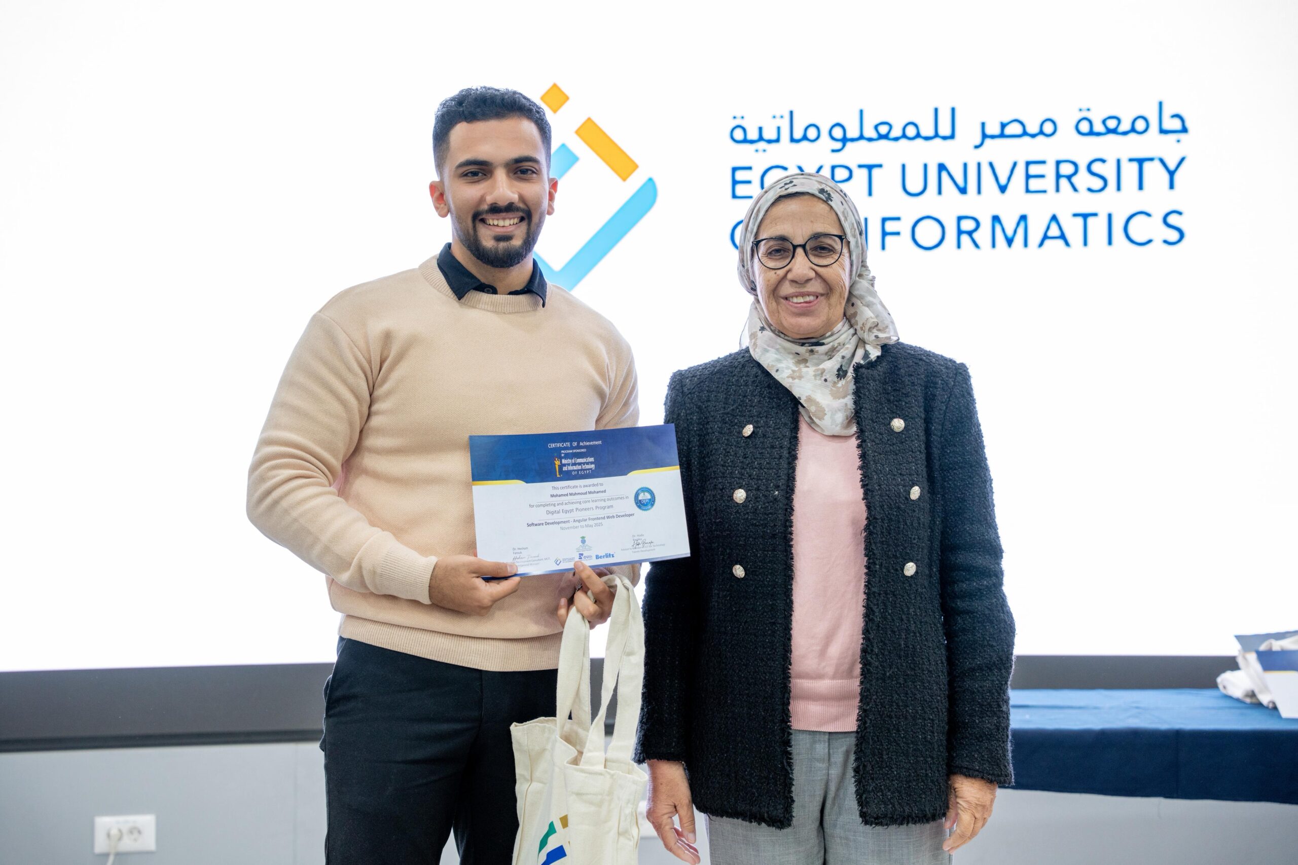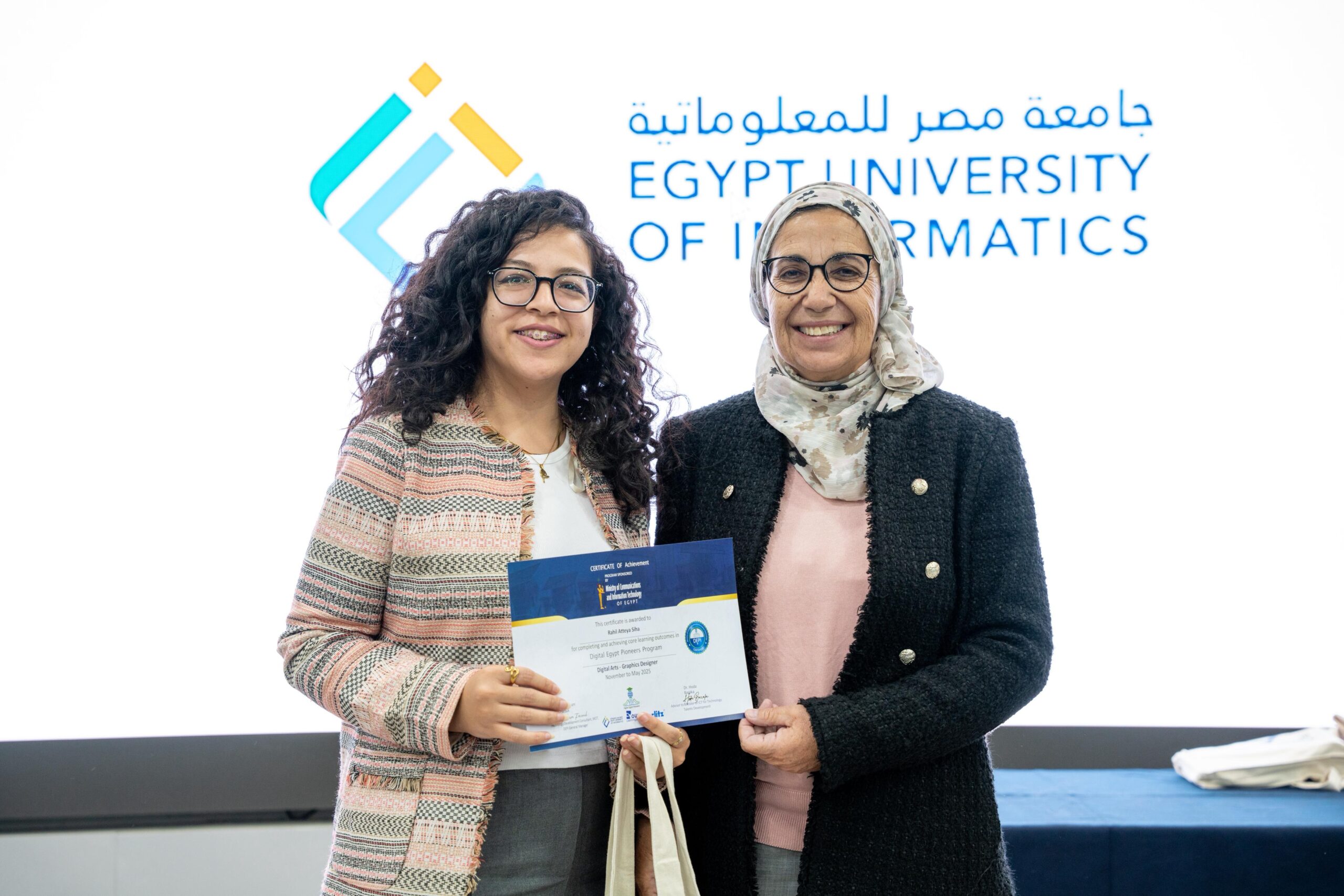 انتهت جامعة مصر للمعلوماتية من تدريب ما يقرب من 1500 شاب وفتاة في اطار التعاون المستمر مع وزارة الاتصالات وتكنوولجيا المعلومات من خلال المبادرات الرئاسيه والقوميه ومنها مبادرة رواد مصر الرقمية التي إطلاقتها وزارة الاتصالات وتكنولوجيا المعلومات بهدف تدريب الشباب للعمل بقطاع الاتصالات وتكنولوجيا المعلومات وذلك من خلال التدريب على احدث التقنيات العالميه في مجالات الاتصالات وتكنولجيا المعلومات وفقا لاحتياجات سوق العمل ومنها تخصصات، “تحليل البيانات”، “تطوير البرمجيات”، “التسويق الإبداعي الرقمي والفنون الرقمية”.