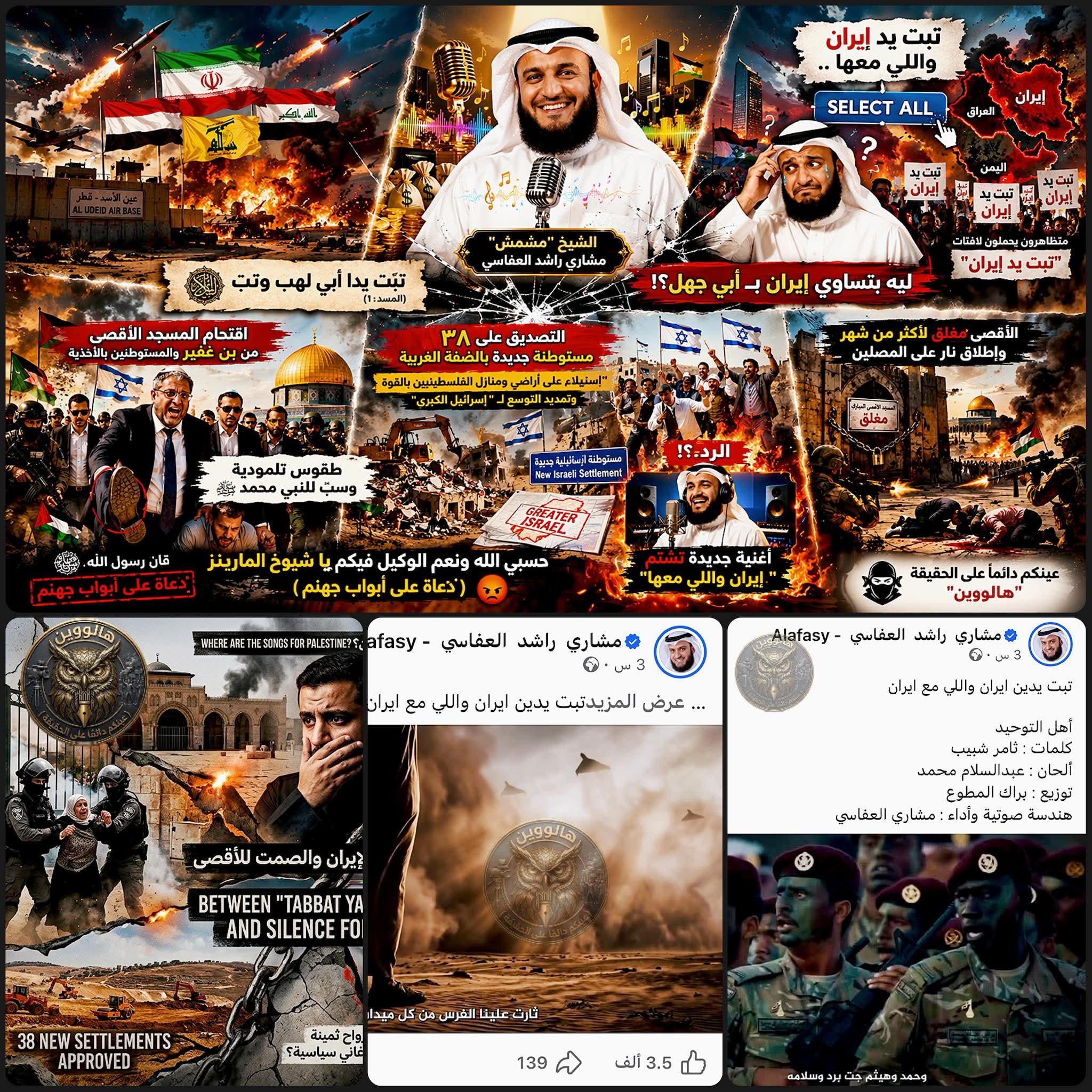 أثار المنشد والقارئ الكويتي الشهير الشيخ مشاري راشد العفاسي جدلاً كبيراً على وسائل التواصل الاجتماعي بعد إطلاقه أغنية جديدة بعنوان “تبت يدين إيران واللي مع إيران”، والتي اعتمدت على أسلوب يحاكي الآية القرآنية “تبت يدا أبي لهب وتب”.