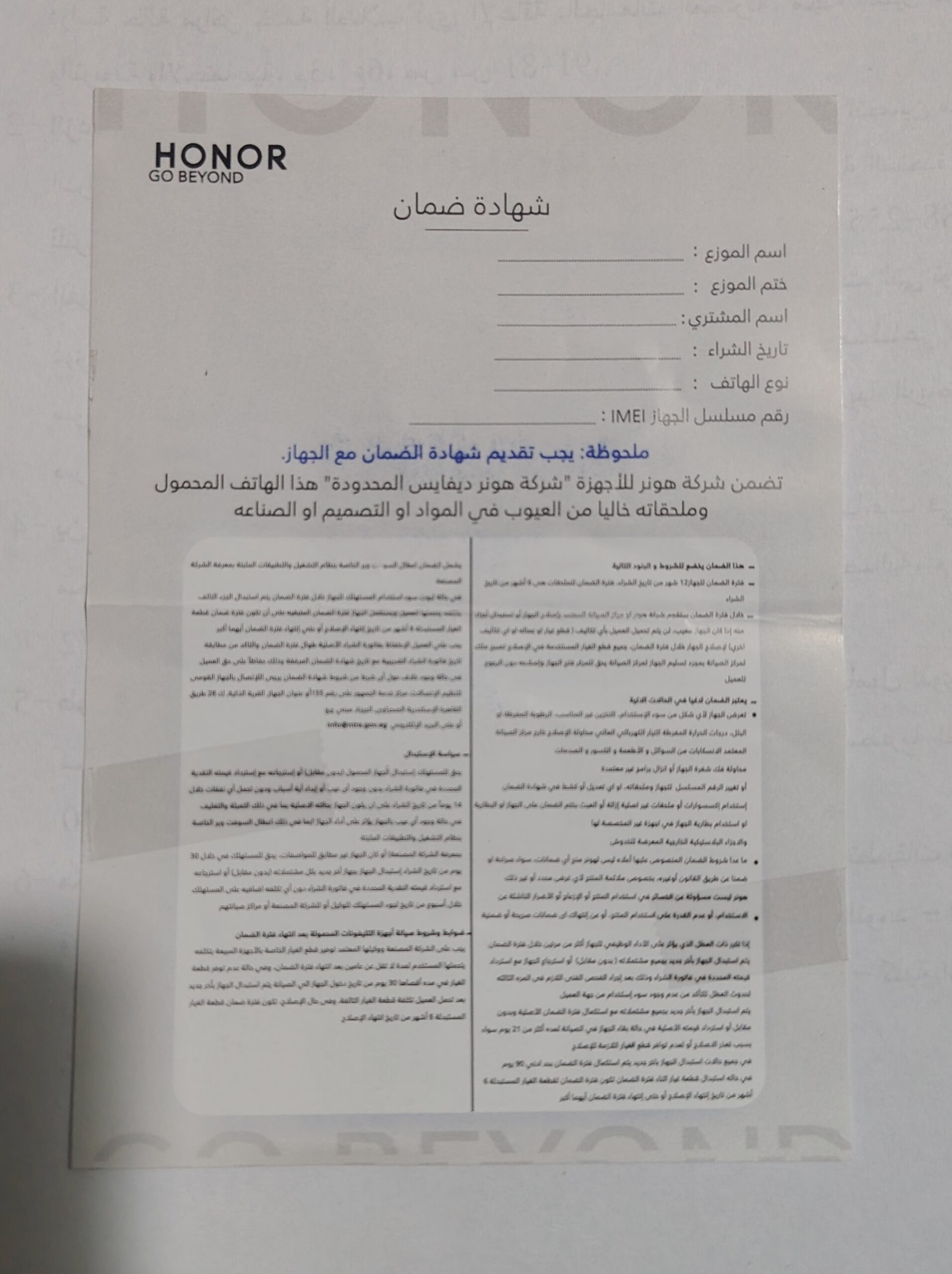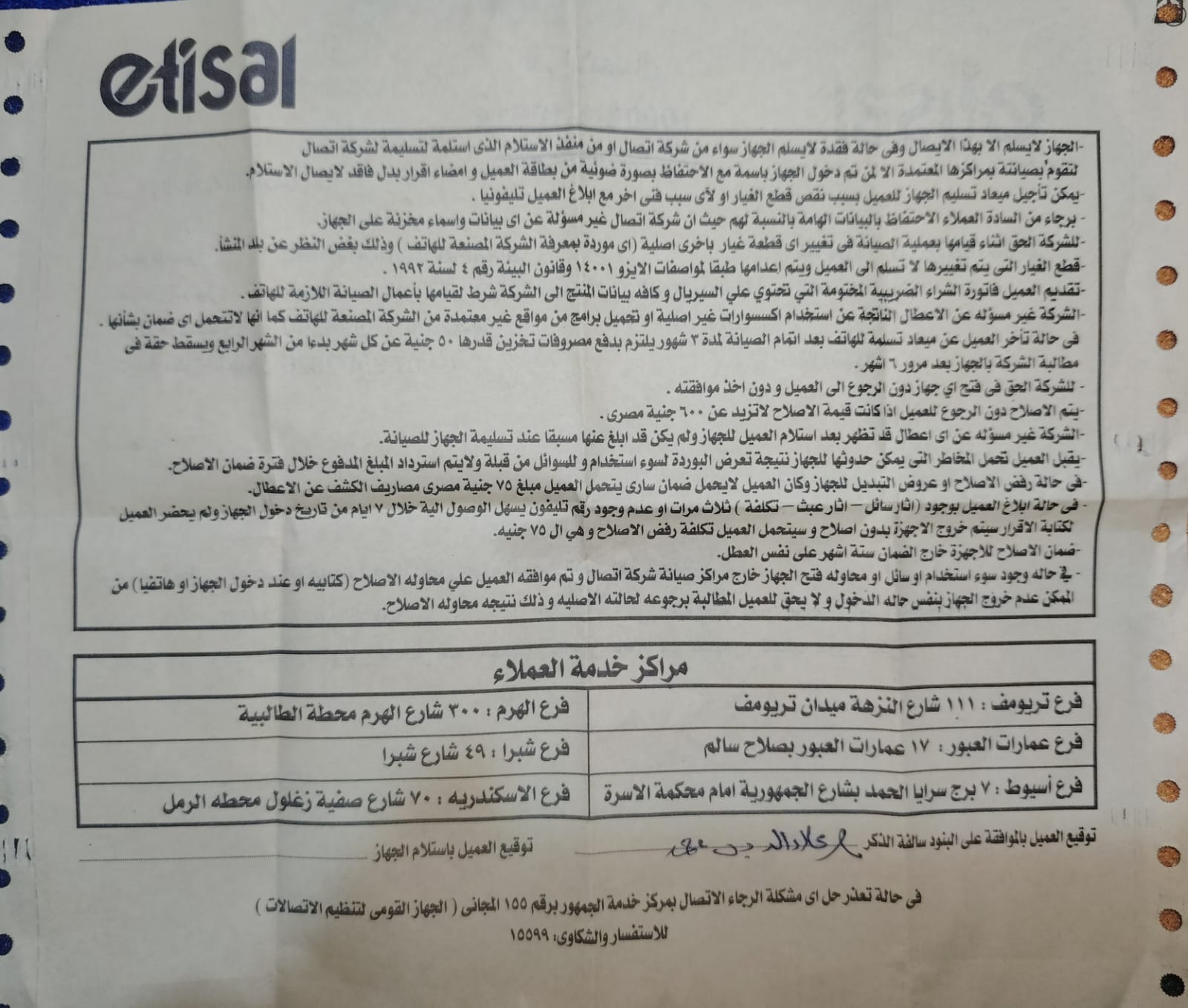 مرفقات (فاتورة الشراء / شهادة الضمان / إيصال تسليم الهاتف للتوكيل/ رقم الشكوى في جهاز حماية المستهلك / صورة الهاتف).