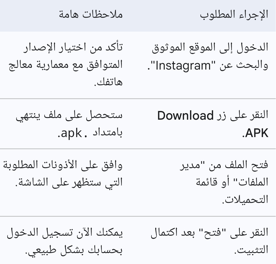 دليل المستخدم لتحميل انستجرام Instagram APK لنظام أندرويد في ظل التحديثات المستمرة لأنظمة التشغيل، قد يواجه بعض مستخدمي أندرويد صعوبات في الوصول إلى النسخ الأحدث من التطبيقات عبر المتجر الرسمي جوجل بلاي (Google Play)، أو قد يرغبون في تجربة نسخ تجريبية (Beta).