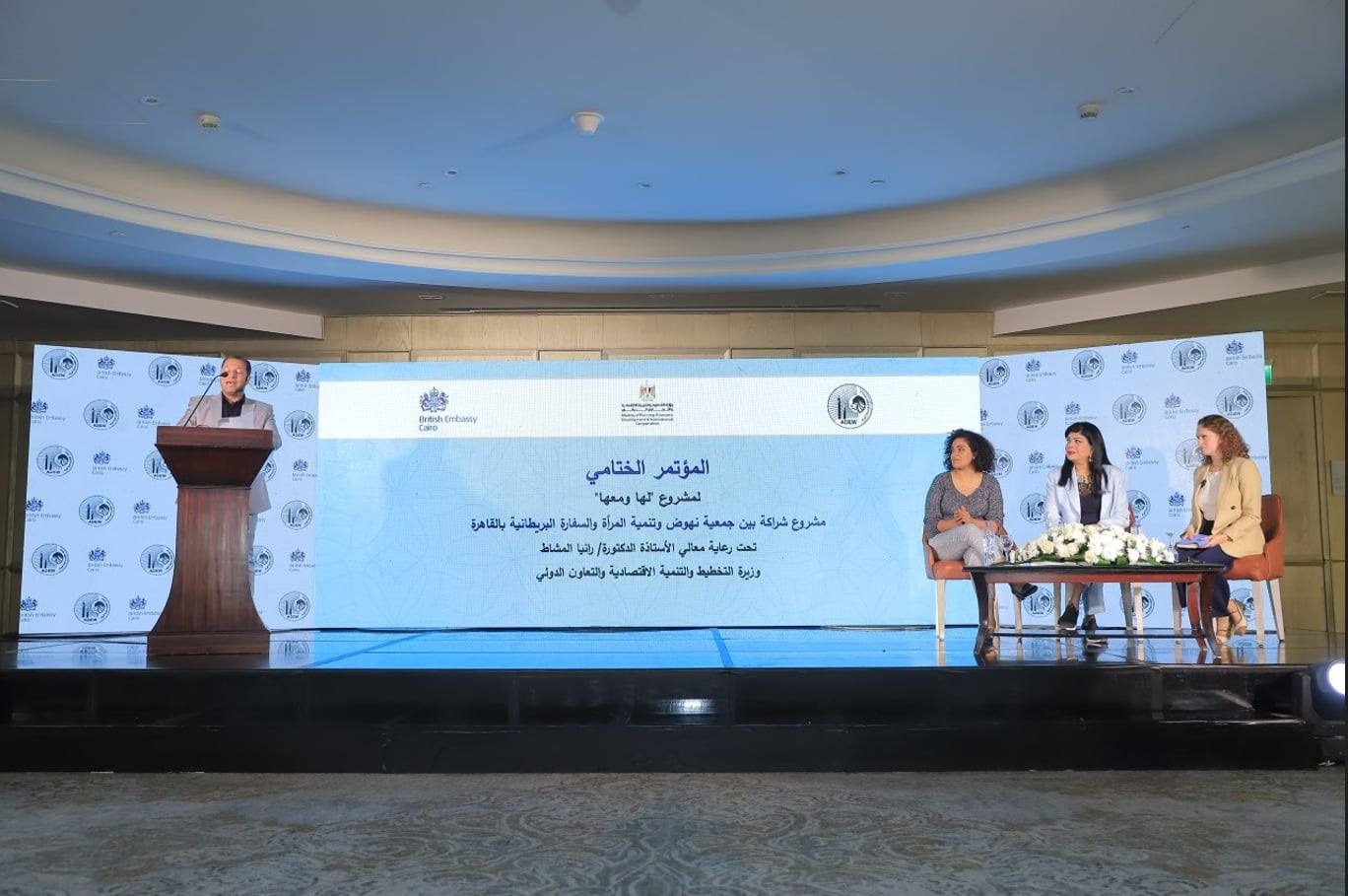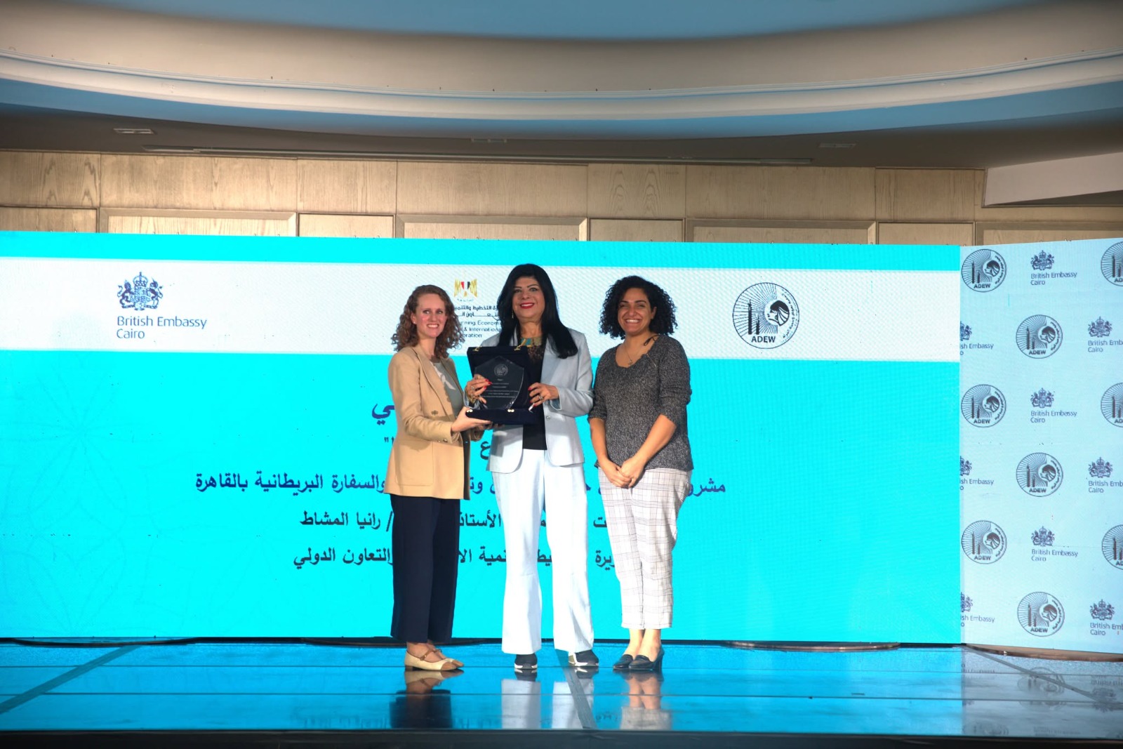 وفي ختام المؤتمر، قدمت د. إيمان بيبرس درع جمعية نهوض وتنمية المرأة إلى السفارة البريطانية بالقاهرة، تقديرًا لشراكتها الفاعلة في مشروع “لها ومعها”.