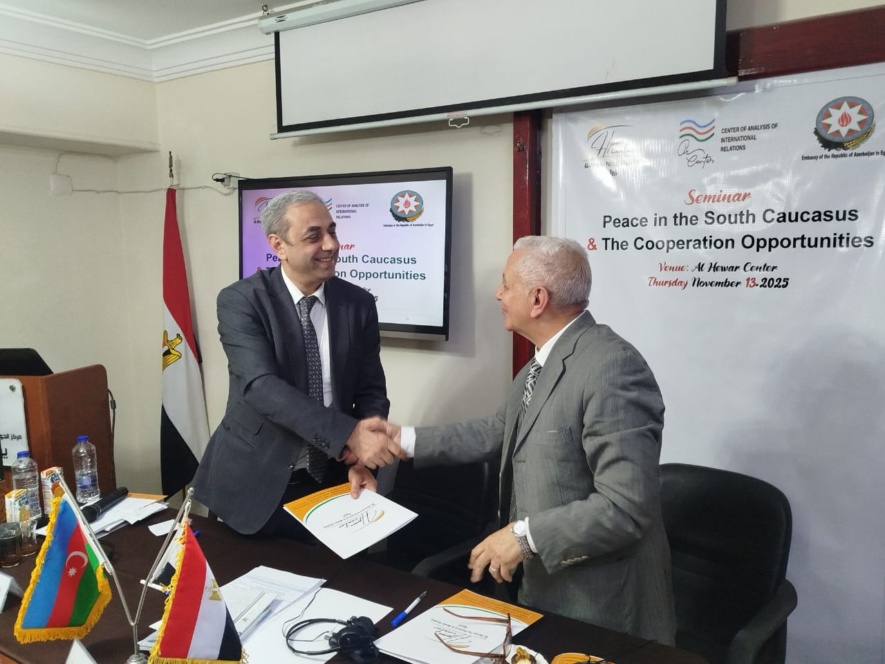 جاء ذلك على هامش ندوة نظمها مركز الحوار للدراسات السياسية والإعلامية، ومركز تحليل العلاقات الدولية بأذربيجان، بالتعاون مع سفارة أذربيجان بالقاهرة، بعنوان “السلام في جنوب القوقاز وفرص التعاون”، بمشاركة عدد من الباحثين المصريين والأذريين، وبحضور سفير أذربيجان في القاهرة، السفير الدكتور الخان بولوخوف.